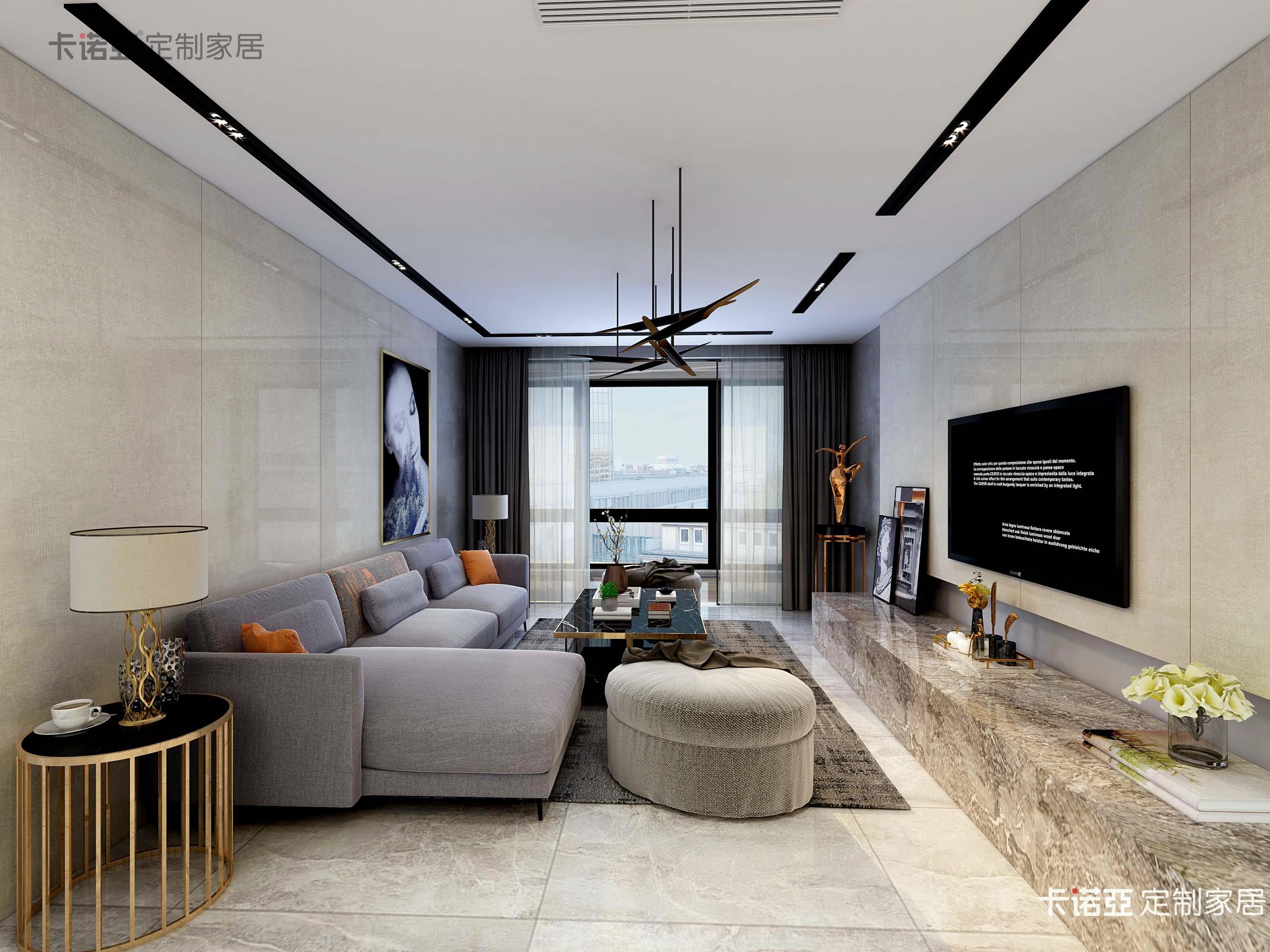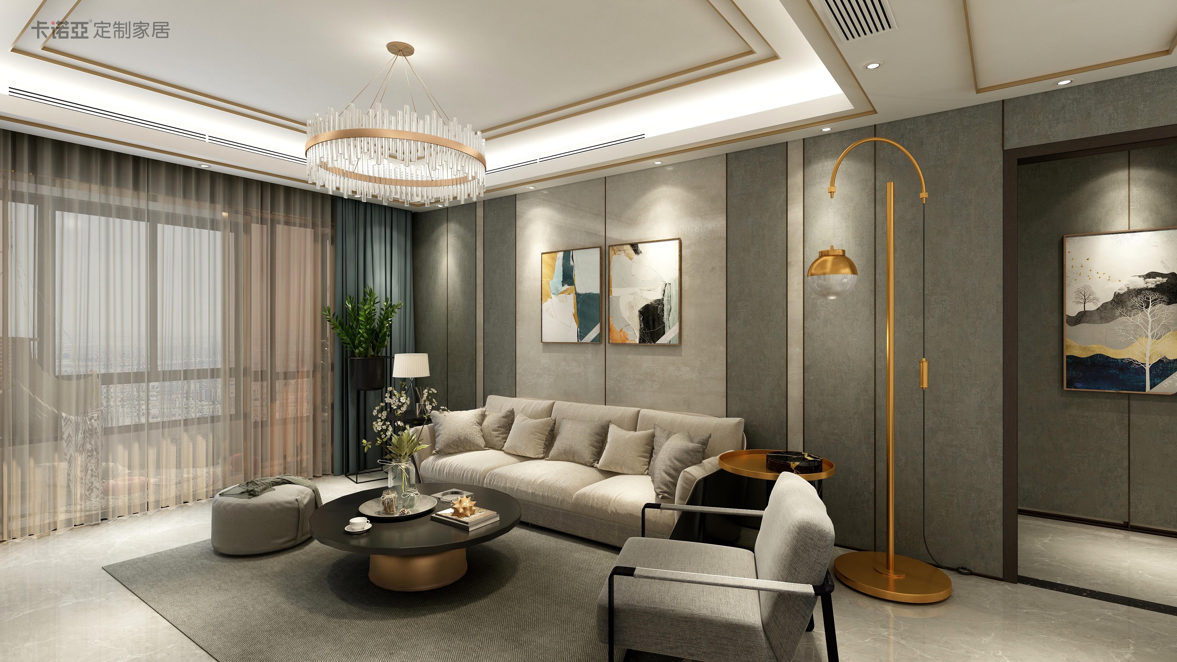 在輕奢風(fēng)的裝飾中,可以選擇一些框架簡(jiǎn)單、風(fēng)格鮮明的裝飾畫來打造客廳的生活格調(diào)。
