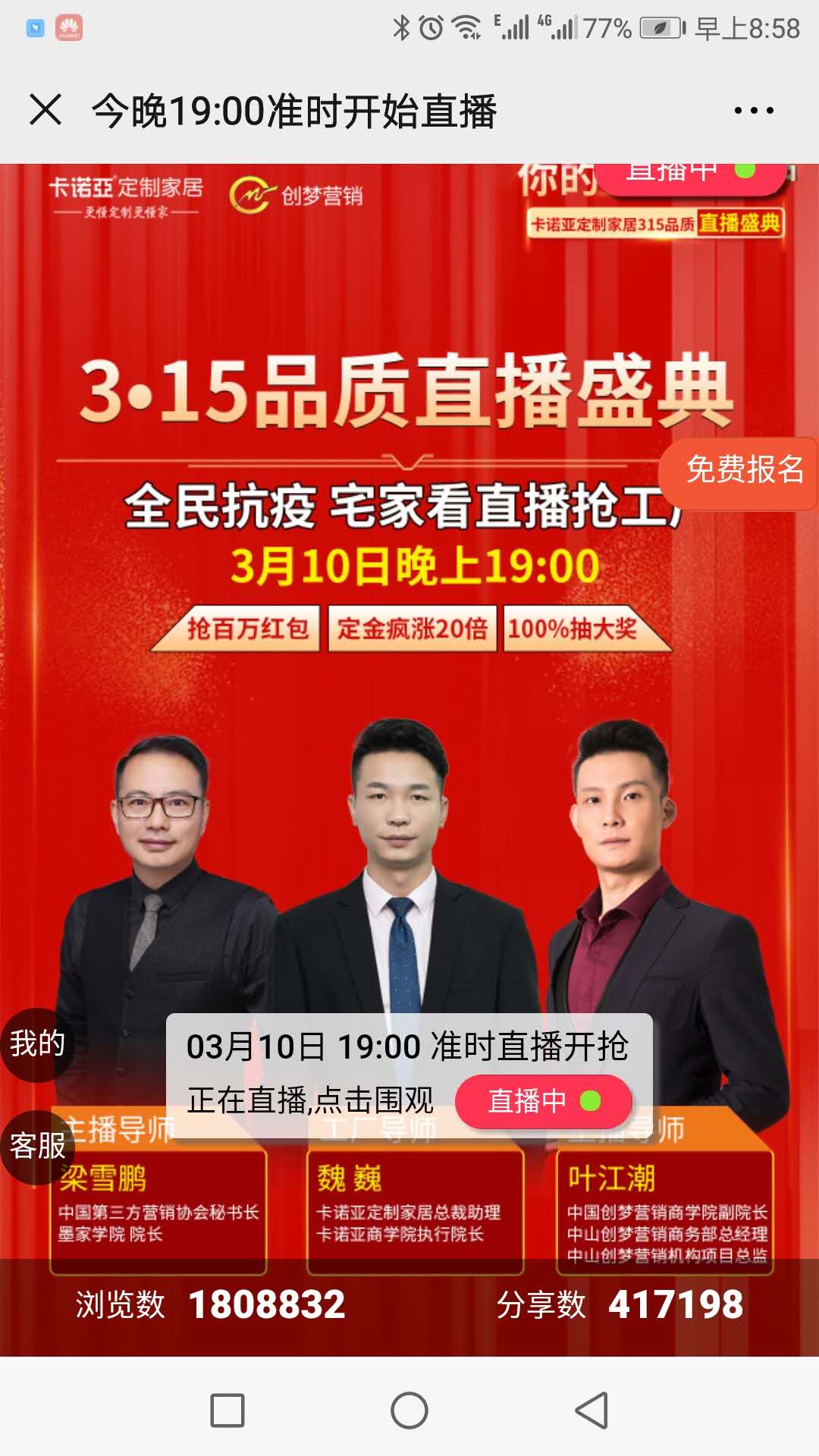 2月27日-3月10日共13天,卡諾亞開展了“你的家、我來守護——卡諾亞315品質直播盛典”活動,以180萬+的瀏覽數、在線訂單8278單、銷售總額逾3億的業(yè)績,再度刷新了行業(yè)直播營銷的戰(zhàn)績。
