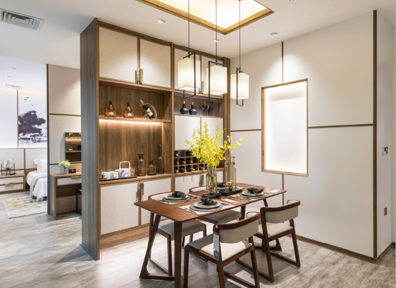 客餐廳一體化設(shè)計(jì),敞開式的空間,從客廳到餐廳再到廚房,沒有距離感。統(tǒng)一的材質(zhì)和色調(diào),讓家更加整整齊齊,結(jié)構(gòu)上又主次有序,彰顯出新中式傳統(tǒng)與現(xiàn)代的完美融合,點(diǎn)綴新生活的美好格調(diào)。