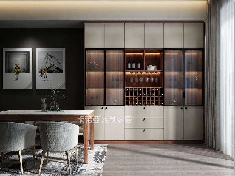 中國(guó)酒文化源遠(yuǎn)流長(zhǎng),酒更是生活氣氛的調(diào)味劑,中秋團(tuán)圓時(shí)刻,與老父談心,當(dāng)然少不了一杯好酒。有酒必有柜,在餐邊柜上設(shè)計(jì)一組酒柜,就著一桌美食,佐酒暢談,把酒言歡,自是怡然自得、雅興倍增。感受卡諾亞輕奢格調(diào)餐廳的優(yōu)雅溫馨,盡享美酒醇香。