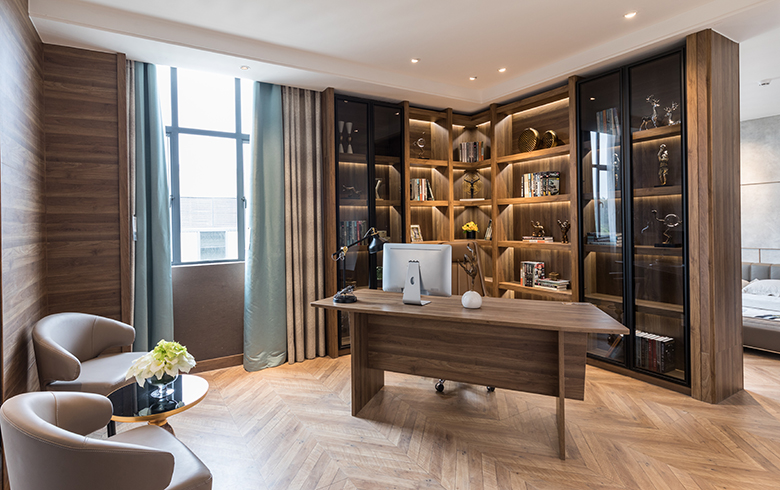 隔音這個因素是非常重要的,因為一個安靜的環(huán)境是閱讀和工作的前提,所以書房設(shè)計的時候最好選擇隔音效果比較好的裝修材料。隔音效果好的地面材料有軟木地板,不僅可以減少噪音,腳感也很舒適,也可以選擇鋪設(shè)地毯,效果也很不錯;墻面可以用吸音板或者軟包裝飾;窗簾建議選擇厚重一些的材料,也可以直接使用隔音窗簾來降噪。